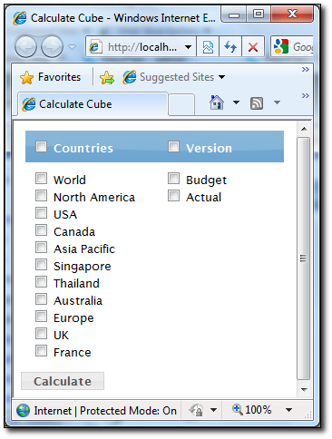 You can also calculate combination of the dimension for each cube, click on the icon next to the model you want to calculate, and then specify the combination of the member that you want to calculate. For example, you may only calculate Budget version of the model, or calculate only certain member of the dimension.