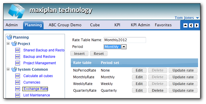 To add a new Rate Table, select Planning>System Common>Exchange Rate and then enter the name of the new Rate Table in the entry box at the top of the screen.