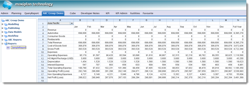 Note that the same report could also be delivered to Excel using the Maxiplan Reporter Add-In for Excel. You only need to define a report once and it can be delivered either to a web browser or to Excel.