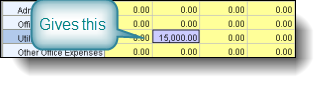 This facility to allocate backwards is not restricted to column totals, it can also be applied to row totals. For example in the screen below, our Office Costs we can see is a summation of Admin + Office Lease + Utilities + Other Office Expenses: