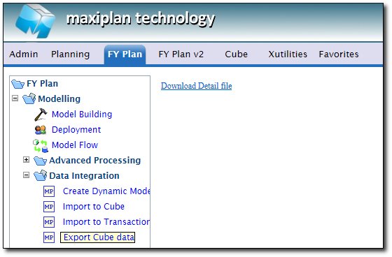 To access this function, go to Cascade Planning Help (BASIC)>Modelling>Maintenance>Export Cube Data.