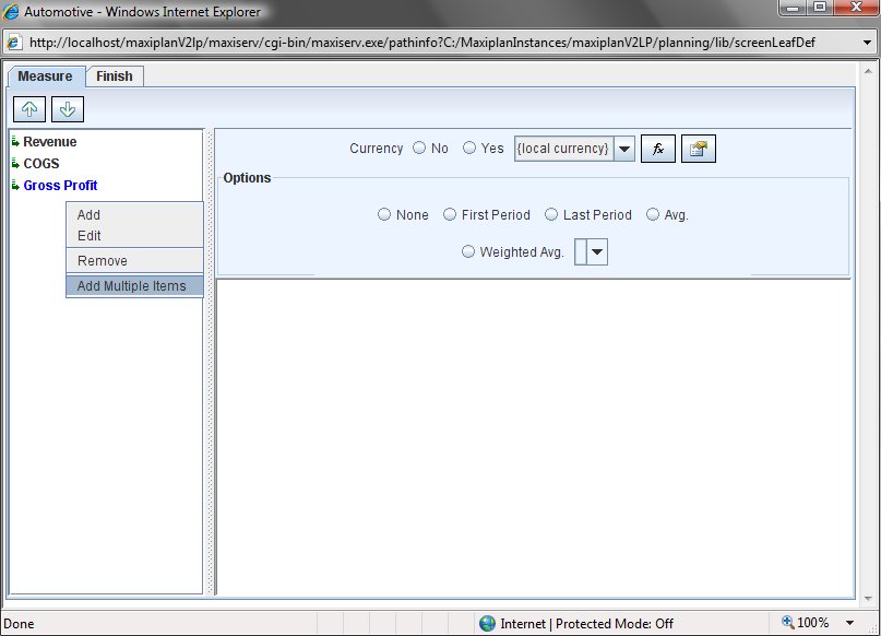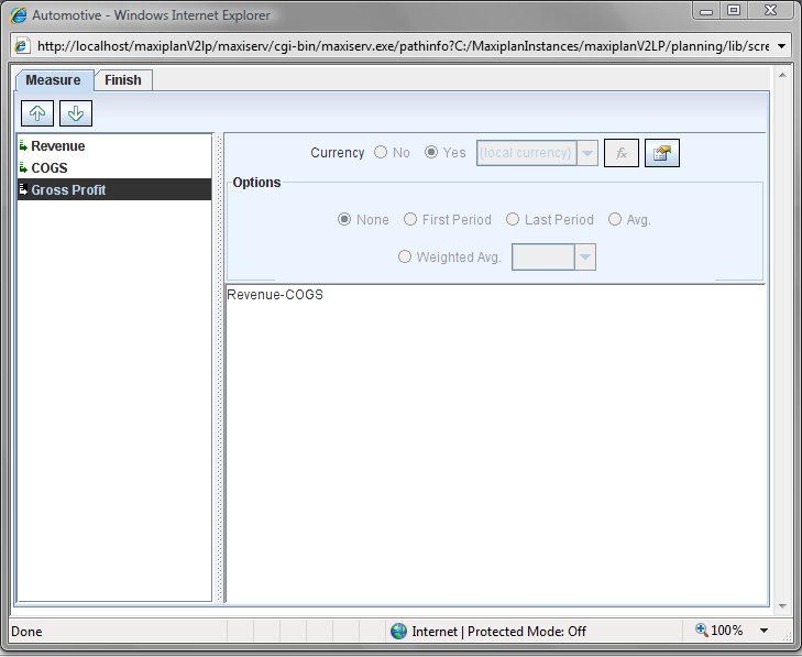 2.Another popup window will appear where we can enter in the additional measures. Just enter them in without the single quote characters as MaxiPlan will add these in for you automatically.