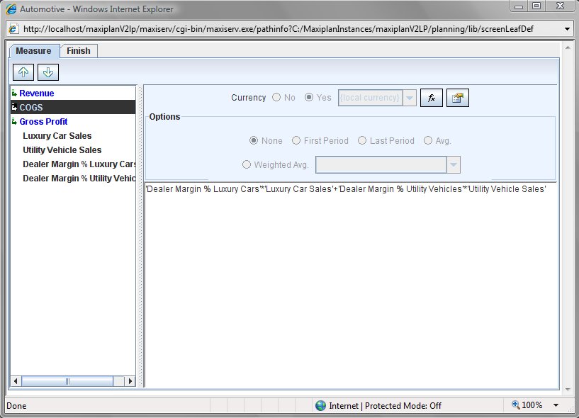 Click on the button to apply the expression to the selected measure. Once we have added the 'Revenue' calculation, we then follow the same process to add the 'COGS' calculation, except of course the calculation rule is different.