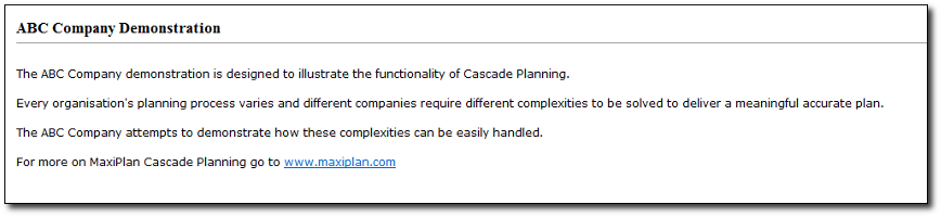 When other users access your planning project, it is useful to provide them with a splash screen which provides information on the purpose of the project, and can also provide instructions for users.