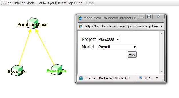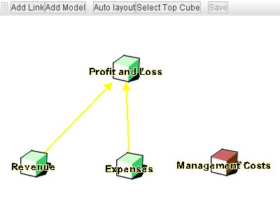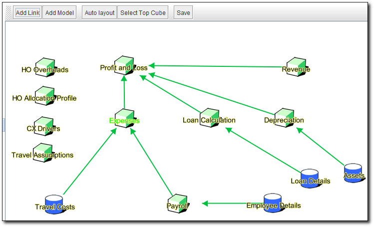 The example shown above is from a reasonably complex suite of models. You can see that the model cube 'Profit and Loss' has multiple links into it from several other models.