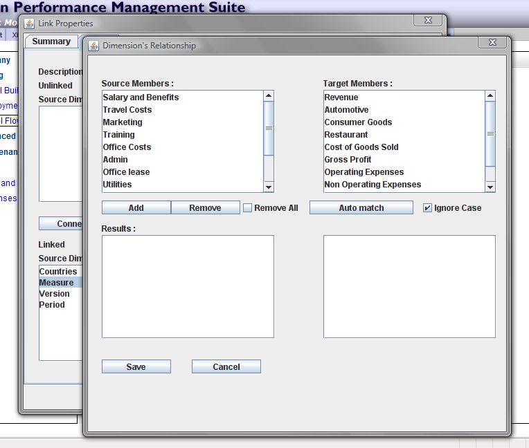 When linking cube models the mapping between dimensions is fairly straightforward, since it is likely you have designed models using similar dimensions, and thus the dimension member names can be easily matched.