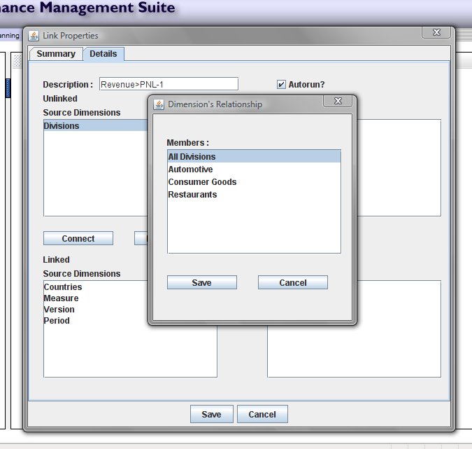 Be careful using this capability. Whilst it can be a powerful and flexible feature, you can potentially create incorrect results with wrongly defined linkages, since if you incorrectly map a source member to multiple target members you could create a 'double counting' problem. Make sure you verify your model links carefully and test the flow of data between the models.