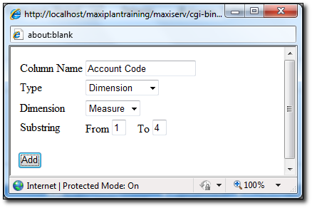 - Dimension - Will output the dimension name, based on the selected dimension, and based on the Substring of the name of the dimension member
