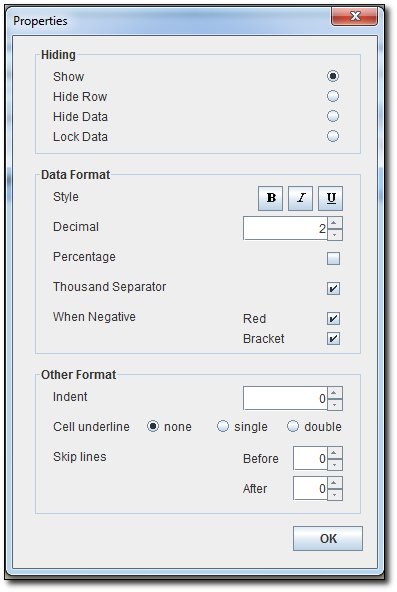 - Hide Data : It will hide the data, but still show the measure name, example usage is for the Group heading of measures.