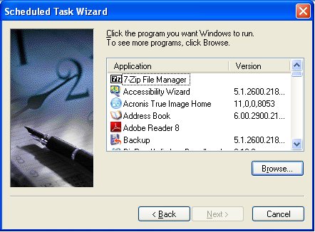 To continue with creating a scheduled task for Windows, click 'Next'. A list of available programs will be displayed.