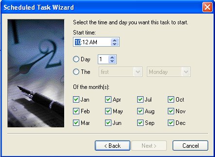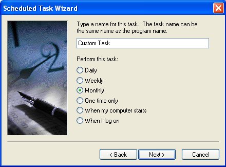 Having selected the program it will be necessary to provide the task with a name and to set a schedule for when the task is to be run and how often.