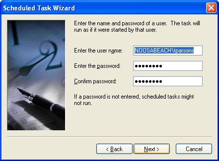 After confirming Username and Password, click on 'Finish' to allow the wizard to create the scheduled task.