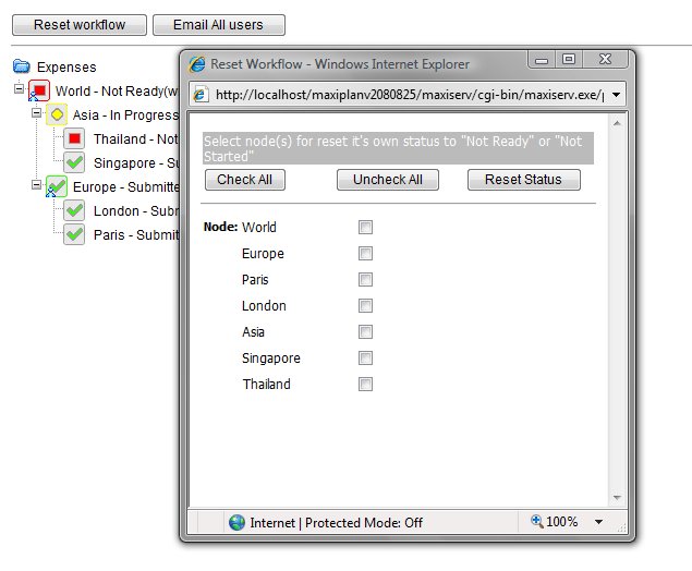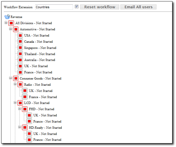 Workflow refers to the management of the submission of spreadsheets deployed to users, and provides the mechanism to manage the status and flow of data in a planning cycle involving the collection of budget submissions, review and consolidation. When deploying slices (spreadsheets) of a model to various users as either 'Owners' or 'Reviewers', workflow is automatically created to allow us to monitor and track the submission and review process, identifying the status of eavh node and the status of the consolidation process.